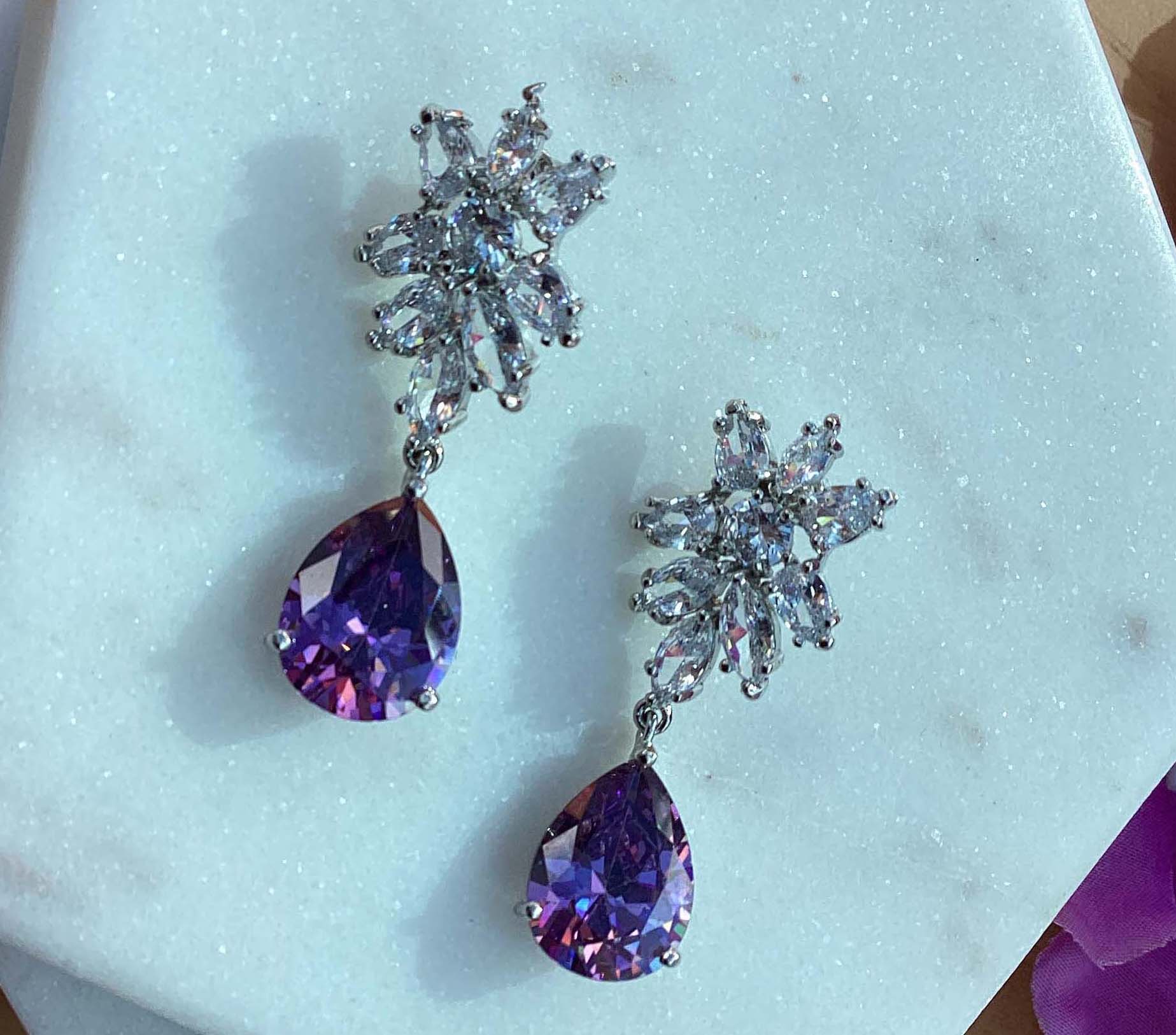 Cubic Zirconia Flower with purple Cubic Zirconia teardrop