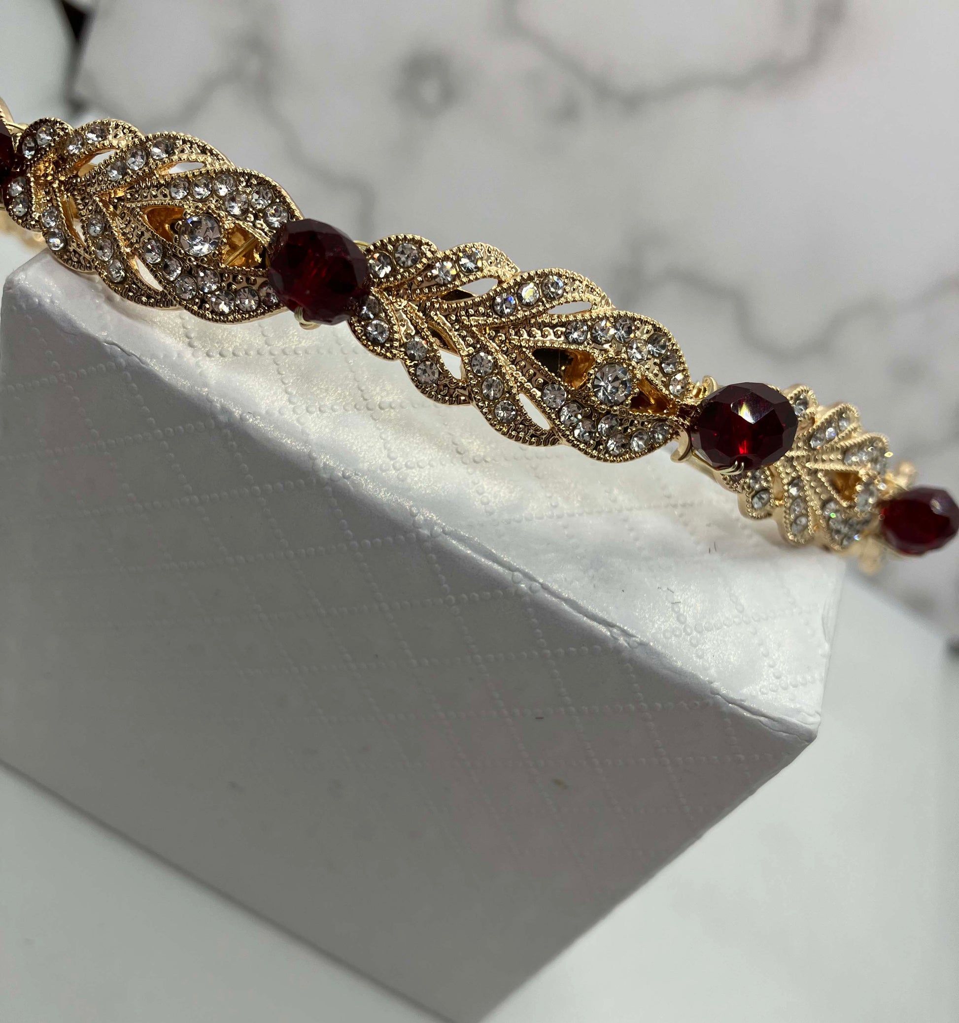Sparkling gold and crystal headband with Swarovski Siam Red Crystals